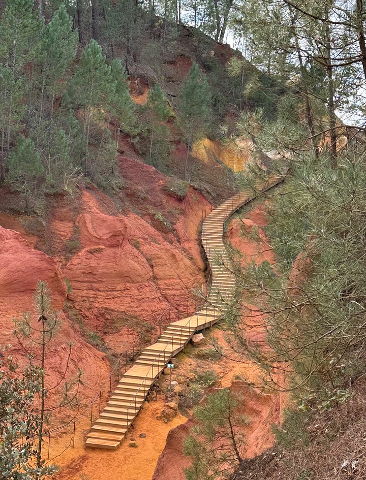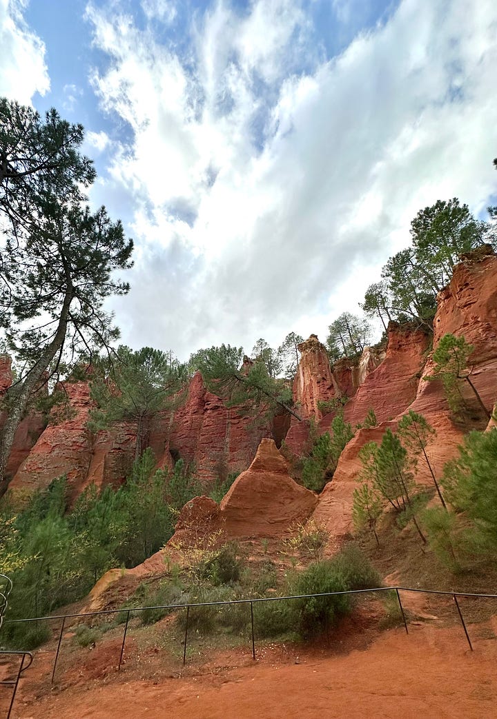 Joel soothed his nerves with un verre de vin rouge, and after, we made our way to Les Sentier des Ocres, a Unesco site. I am here to say, the balm of nature is a real thing.