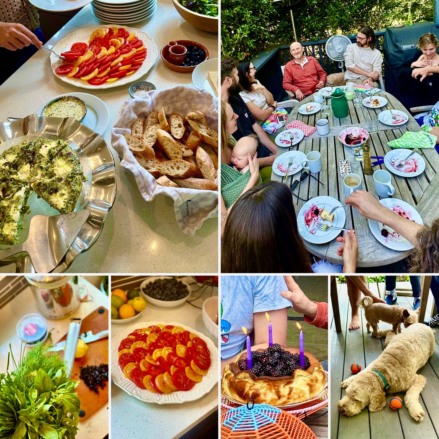 For my husband’s birthday we had eleven around the table, and Milo the ball hoarder beneath the table! I made a delightful frittata - a portmanteau of two recipes which I think you should make tout de suite!