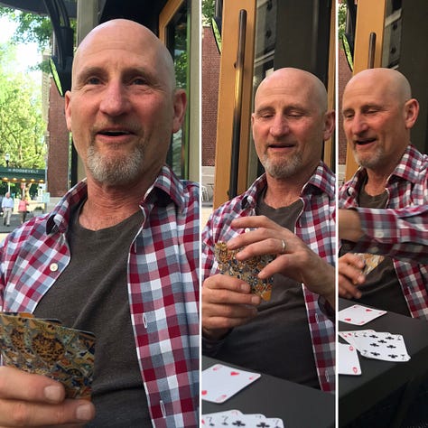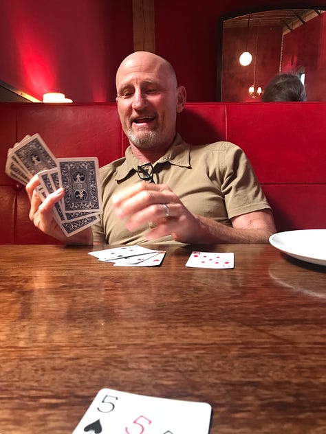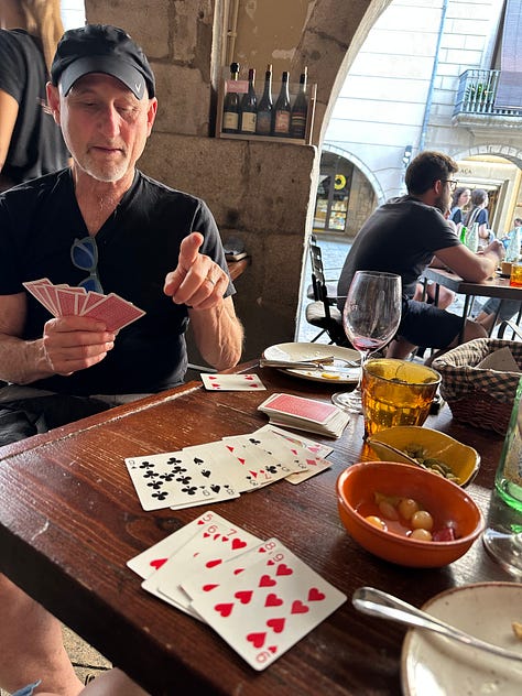Gin Rummy of course! I spoke halting French, the man spoke halting English. Joel and the woman nodded and smiled. Intermittent comprehension, 💯 good feelings. Clearly the couple adores their city. They suggested a park, a museum, Le Marché Victor Hugo, and Emile’s.