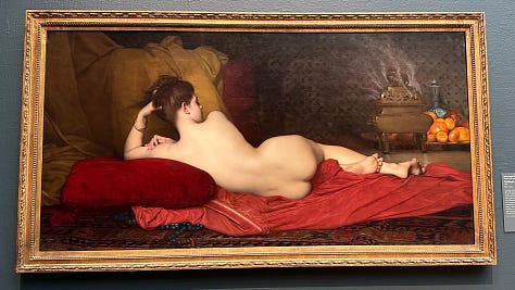Earlier this year I shared a post about my time in Chicago. Particularly about the Art Institute of Chicago and the odalisque, that painting trope that finds a woman in the center of the canvas, stretched out on a bed, surrounded by sumptuous fabrics, nude or seductively draped, sunk in pillows, gazing beyond the frame, there for the pleasure of the painter and the viewer. I sought paintings through the museum looking to see how the odalisque form has been co-opted and reinvented.