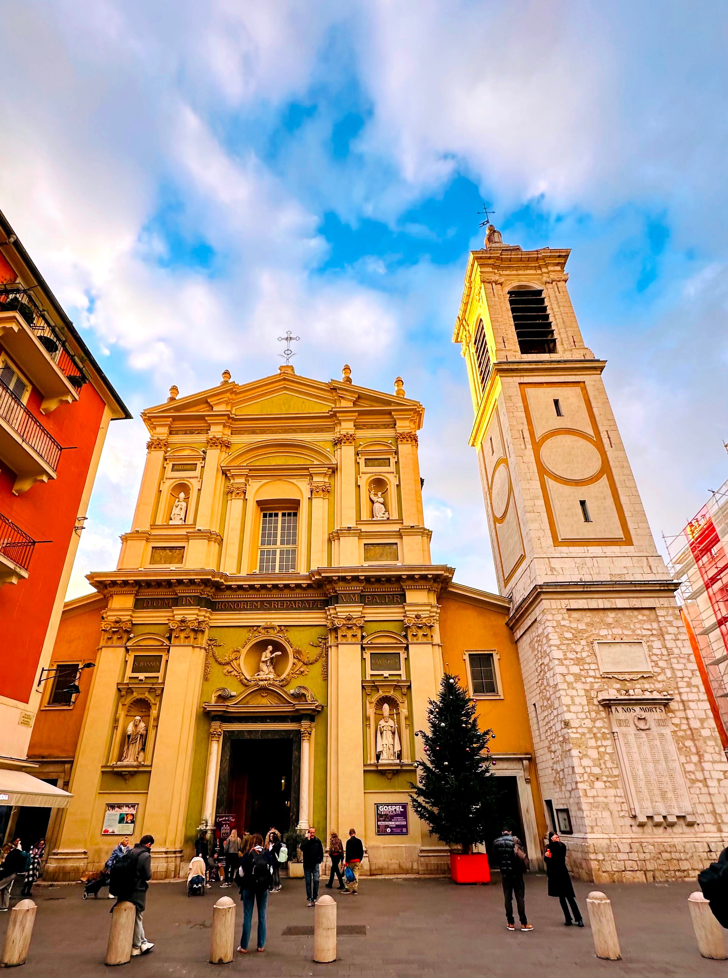 Music poured from this glorious church in Vieille Ville, Nice. Of course I paused. Of course I pulled out my phone and started to video record the choir, the priests in opulent purple robes, the small congregation, the vitrine, the ceiling. Dear Reader, I was rapt.