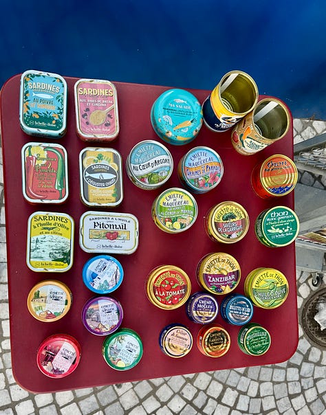 These little sniffers in cafés so you can smell your coffee beans before you choose your drink. Giant hot cheese on the Blvd. Saint Antoine! And, look at this deliciousness: tinned fish in beautiful packaging, from la belle-iloise.