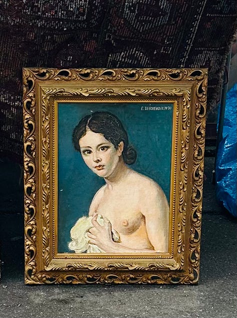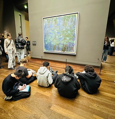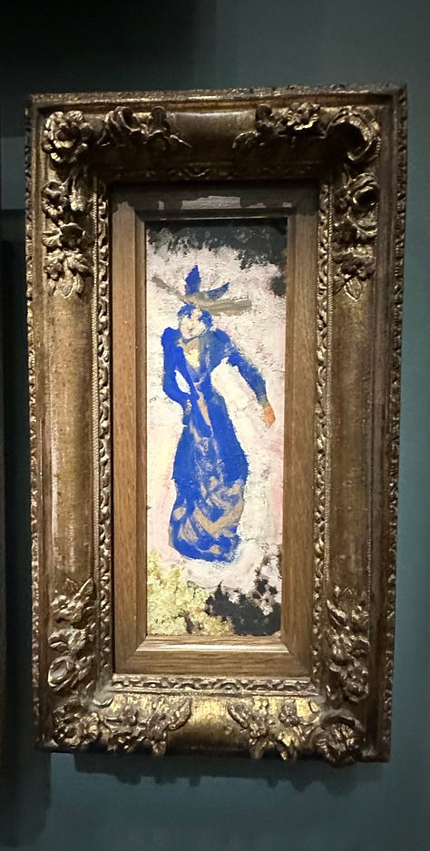 The painting spotted at the brocante⊠I donât know whatâs with the eyes? Was it a portrait or a decision or an accident? And these adolescent boys at the MusĂ©e DâOrsay, copying the waterlilies⊠my little Grinchy heart grew two sizes! And, this tiny painting by Ădouard Vuillard, Marthe Mellot en bleu. I love it so much, the shape, the chapeau!
