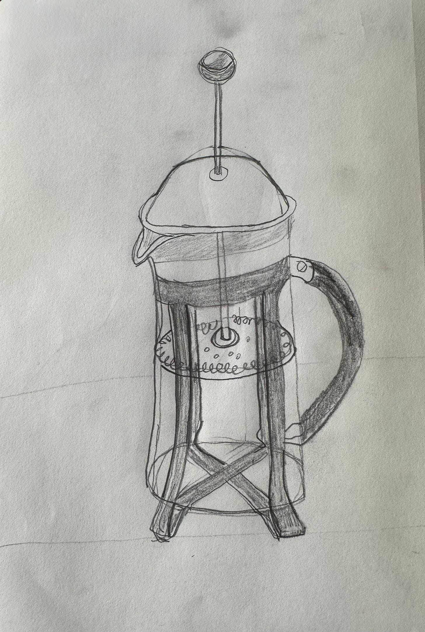 Of course Joan Didion said she writes to discover what she is thinking. I would push that further. What catches my eye enough to snag a photo, make a quick sketch (which I’ve been trying…see that French press up top?), or jot a quick note reveals what is important to me on any given day, what surprises and delights me. Didion also says, “…the common denominator of all we see is always, transparently, shamelessly, the implacable ‘I.’” My notebook introduces me to me. Bonjour-Bonjour!