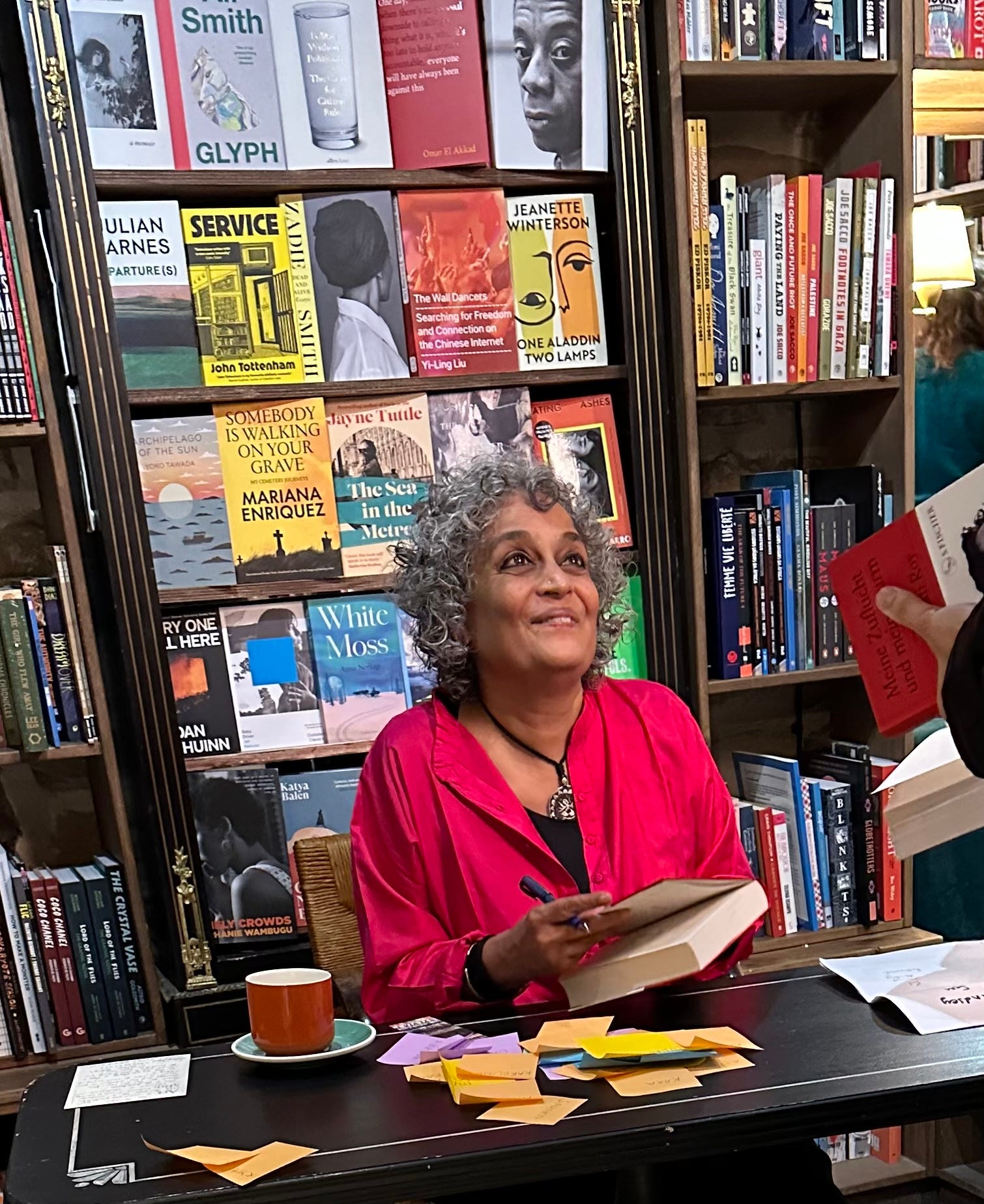 Today I was lucky to see Ms. Roy at Shakespeare and Co. where she was signing books.