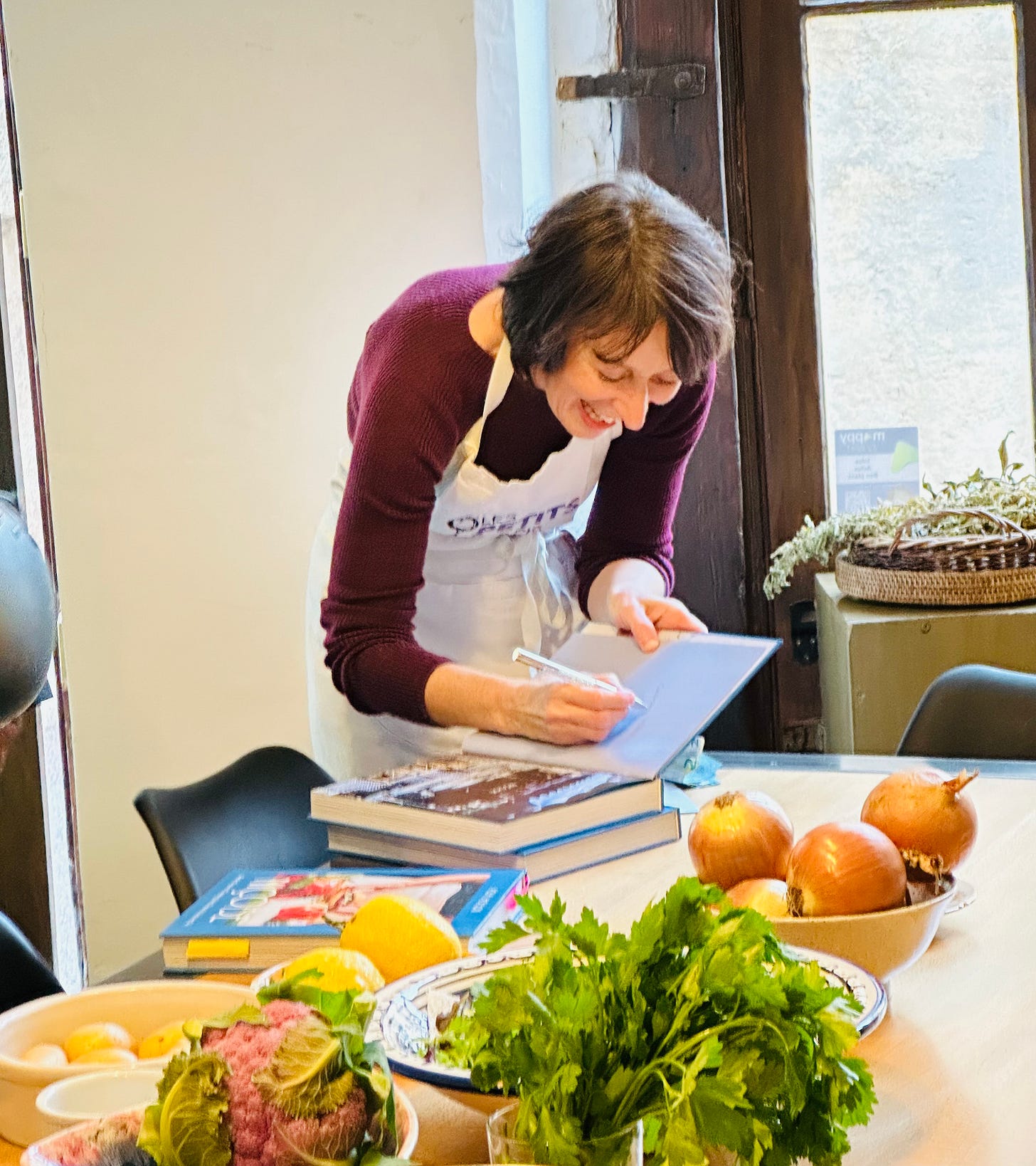 I’m harkening back to our time in Nice where I was lucky to take a cooking class with Rosa Jackson. That’s Rosa, signing her excellent cookbook, NIÇOISE. Let me say, if you find yourself in Nice, and you love food, love to cook, love to learn about a new city, Les Petits Farcis is perfect!